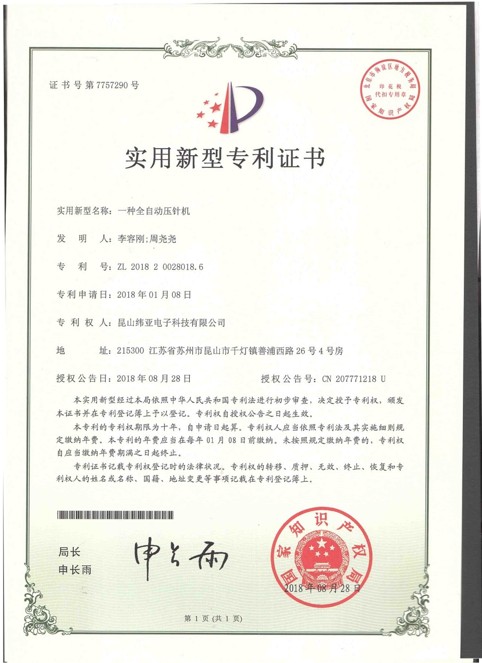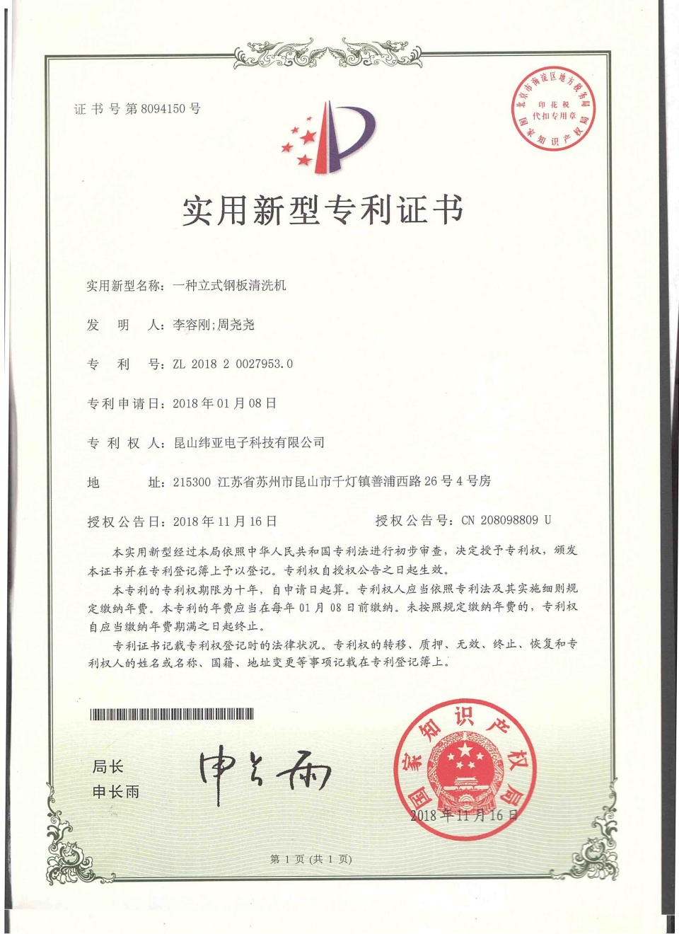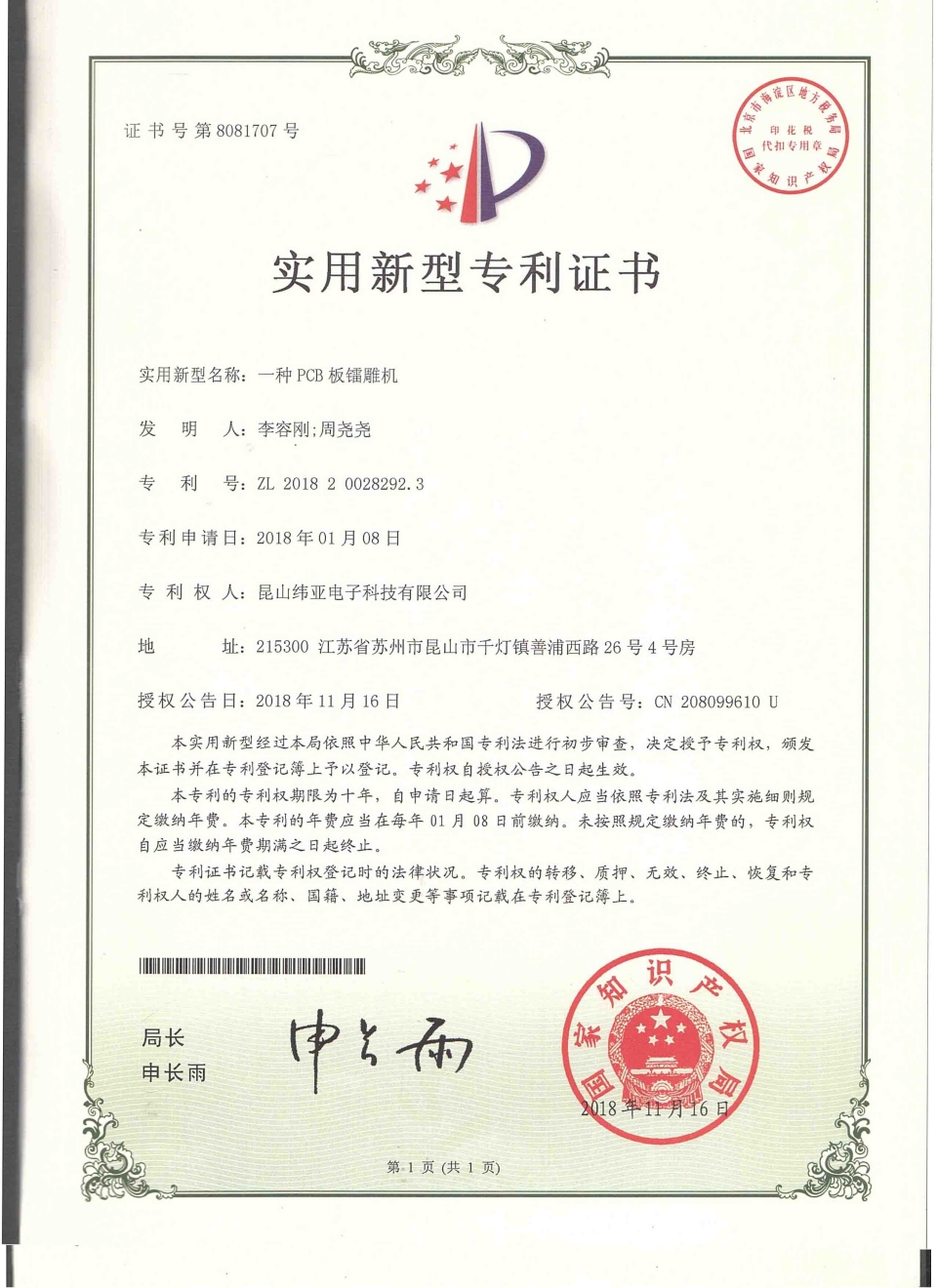 專利證書