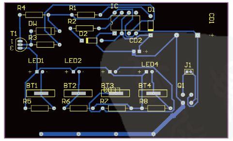 Protel 2004中布線時(shí)首先要設(shè)置好布線規(guī)則,以滿足安全原則等電氣要求。根據(jù)充電器電路的實(shí)際要求,這里設(shè)置安全間距為10mil,頂層布線、普通線寬10mil、電源線20mil、地線30mil.布線采用自動(dòng)布線,對(duì)不合乎要求的地方后可以進(jìn)行手工修改。布線時(shí)在滿足安全原則等電氣要求的前提下,導(dǎo)線要精簡(jiǎn),盡可能短,盡量少拐彎,力求導(dǎo)線簡(jiǎn)單明了。