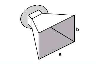 如下圖所示是一個有趣的天線之橫切面,是將一個喇叭天線當成一個拋物面反射器(parabolic reflector)的一部份。