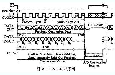 TLC2543是TI公司的帶串行控制和11個輸入端的12 位、開關電容逐次逼近型A/D轉換器。 片內轉換器有高速、高精度和低噪音的特點。 TLC2543工作過程分為兩個周期:I/O周期和轉換周期。I/O周期由外部時鐘SCLK決定,延續8、12或16個時鐘周期,同時進行兩種操作: 在SCLK上升沿以MSB方式輸入8位數據到片內寄存器;在SCLK下降沿以MSB 方式輸出8、12、16位轉換結果。轉換周期在I/O周期的后一個SCLK下降沿開始,直到EOC信號變高,指示轉換完成。 為了與TLV5618的I/O周期一致,采用了MSB方式,使用CS的16 時鐘傳送的時序。其操作時序如圖3 所示。杭州PCB|杭州smt