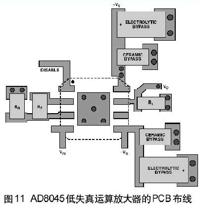 低失真引腳排列允許輸出引腳(專用反饋引腳)和反相輸入引腳之間可以靠近連接,如圖11所示。這樣極大地簡化和改善了布線。杭州PCB|杭州smt